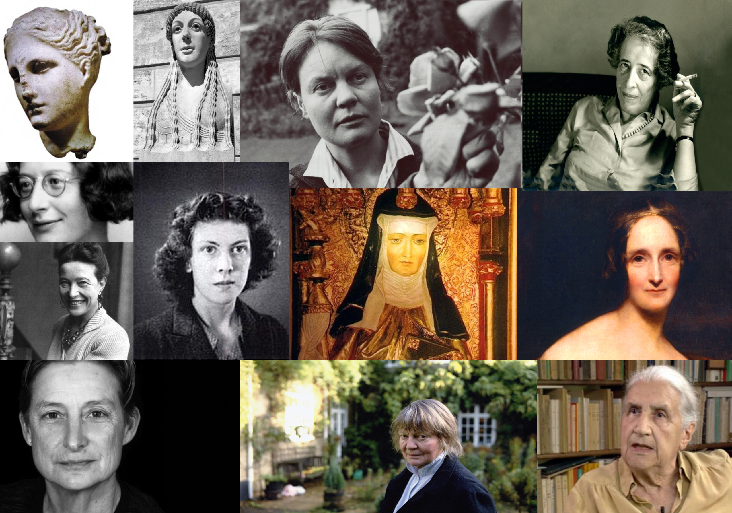 Nell’immagine di copertina una selezione, non esasustiva eppure significativa, di figure femminili fondamentali nella storia della filosofia mondiale che hanno contribuito all’evoluzione dell’umanità sin dall’antichità.
