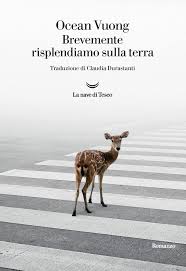 La poesia, la prosa, la pittura, la fotografia sono gli strumenti che Ocean Vuong, giovane scrittore vietnamita al suo romanzo d’esordio, utilizza per scrivere la lunga lettera alla madre morente. Brevemente risplendiamo sulla terra pubblicato da La nave di Teseo ci tocca e ci sfiora con immagini crudissime e descrizioni sublimi, pittura di parole, fotografia dei verbi che descrivono l’attimo, racconto di vite strappate e disperate che intrecciano sogni e bugie. Il volo degli insetti che si posano sulle foglie di tabacco, le parole e i gesti di Trevor, compagno poetico e impaurito del giovane Ocean, le mani usurate della madre, i capelli bianchi della nonna, la cittadina americana che non offre altro che droga e solitudine, le gradazioni della luce che si posa sulle persone e sugli oggetti, le atmosfere segrete dei luoghi vissuti. Vuong scatta una parola e ti risucchia dentro il suo universo bello e agghiacciato, sdradicato e contemporaneo. E’ libro confessione alla madre che non leggerà mai lo scritto, sta morendo e non ha mai imparato l’inglese. Un libro importante, che non si legge facile ma che spennella e approfondisce gli stati del cuore, dell’amore e degli occhi.