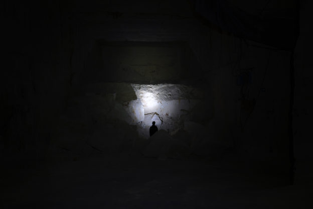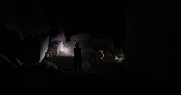 Drammatico come una tragedia greca, spaventoso come un film horror, attraente come un buco nero, queste le emozioni che mi ha suscitato il video “Another day” del duo artistico Barbara e Ale. Il lavoro è stato presentato al PAC – Padiglone di arte contemporanea di Milano in occasione della giornata del contemporaneo. Il video dura 9′.32″, il contrasto tra l’oscurità e il bianco della pietra, tra il silenzio e la voce potente di Alda Caiello, tra il sopiro e le percussioni di Elio Marchesini scombussalono e pacificano, li si segue nelle loro estensioni vocali, li si lascia nelle percussioni più violente. Una vera battaglia, un gioco di potenza e di potenti. I musicisti indossano torce e disegnano il perimetro del luogo, mentre si sfidano non solo tra loro, ma anche con la cava stessa come dei sopravvissuti che hanno trovato rifugio nel sottosuolo. Another Day è ambientato nelle cave sotterranee di Grassi Pietre nei Colli Berici