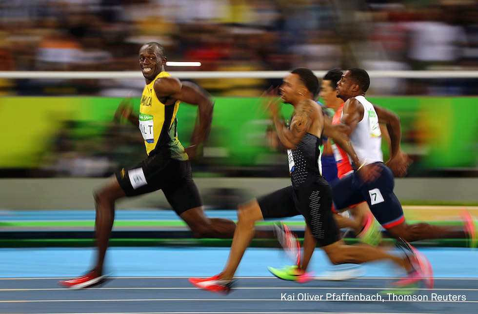 Sport, 3° premio 13 febbraio 2017Full resolution (980 × 644) Kai Oliver Pfaffenbach, Thomson Reuters Il sorriso d'oro di Rio Il giamaicano Usain Bolt sorride e guarda indietro mentre vince la semifinale dei 100 metri alle Olimpiadi di Rio de Janeiro, Brasile. World Press Photo
